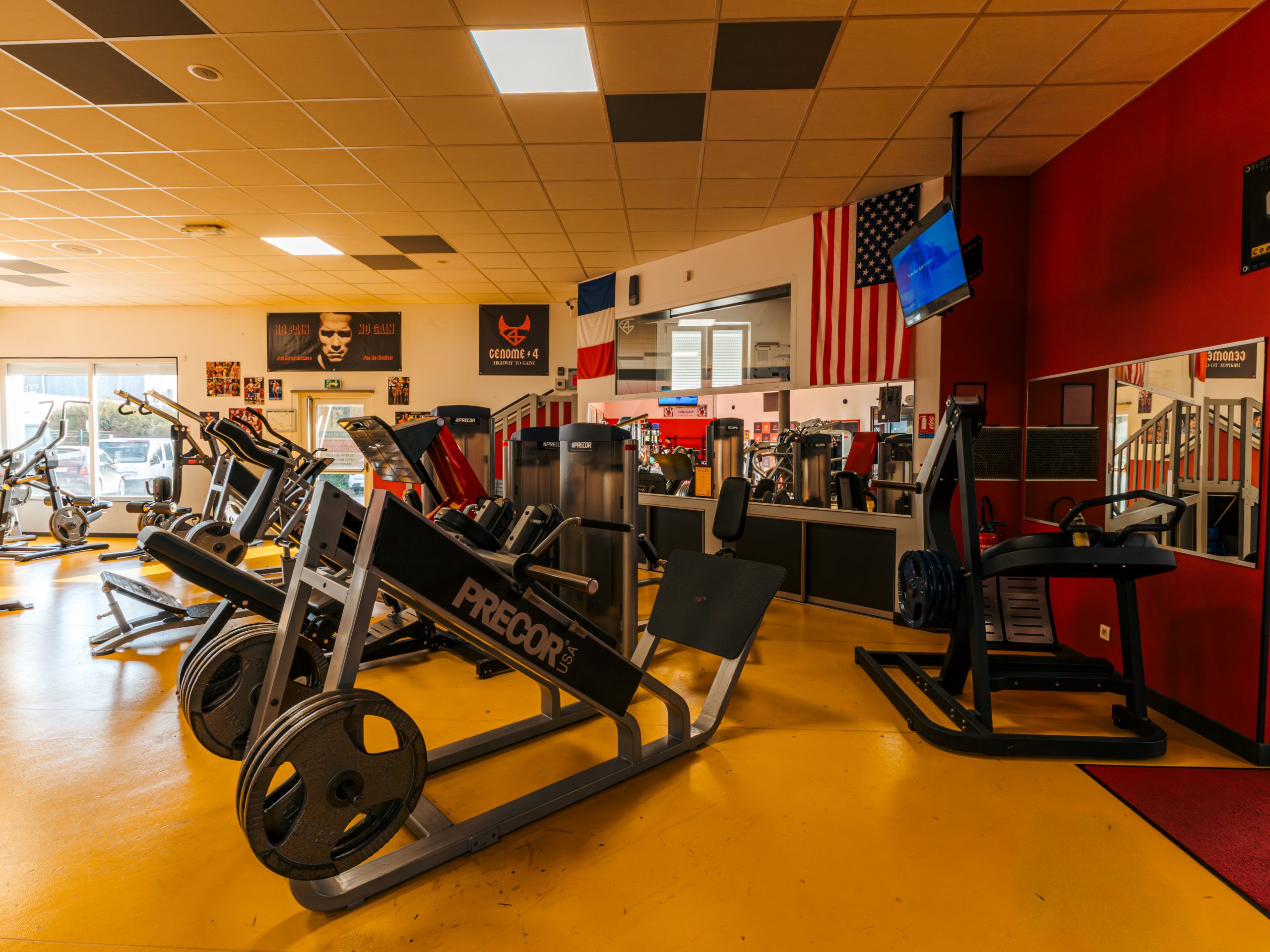Une fois entré, un large choix de machines (presses, poulies, racks), de poids (disques, haltères, barres), et d’ergomètres (tapis de course, vélos, elliptiques, steppers, rameurs) sont à votre disposition pour des entraînements diverses : renforcement musculaire, lipolyse, cross-training, cardio-vasculaire.